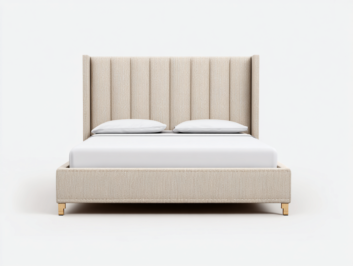 Letto matrimoniale imbottito tessuto 210x180x120 cm - rivestimento beige - testiera verticale - stile moderno per camera da letto