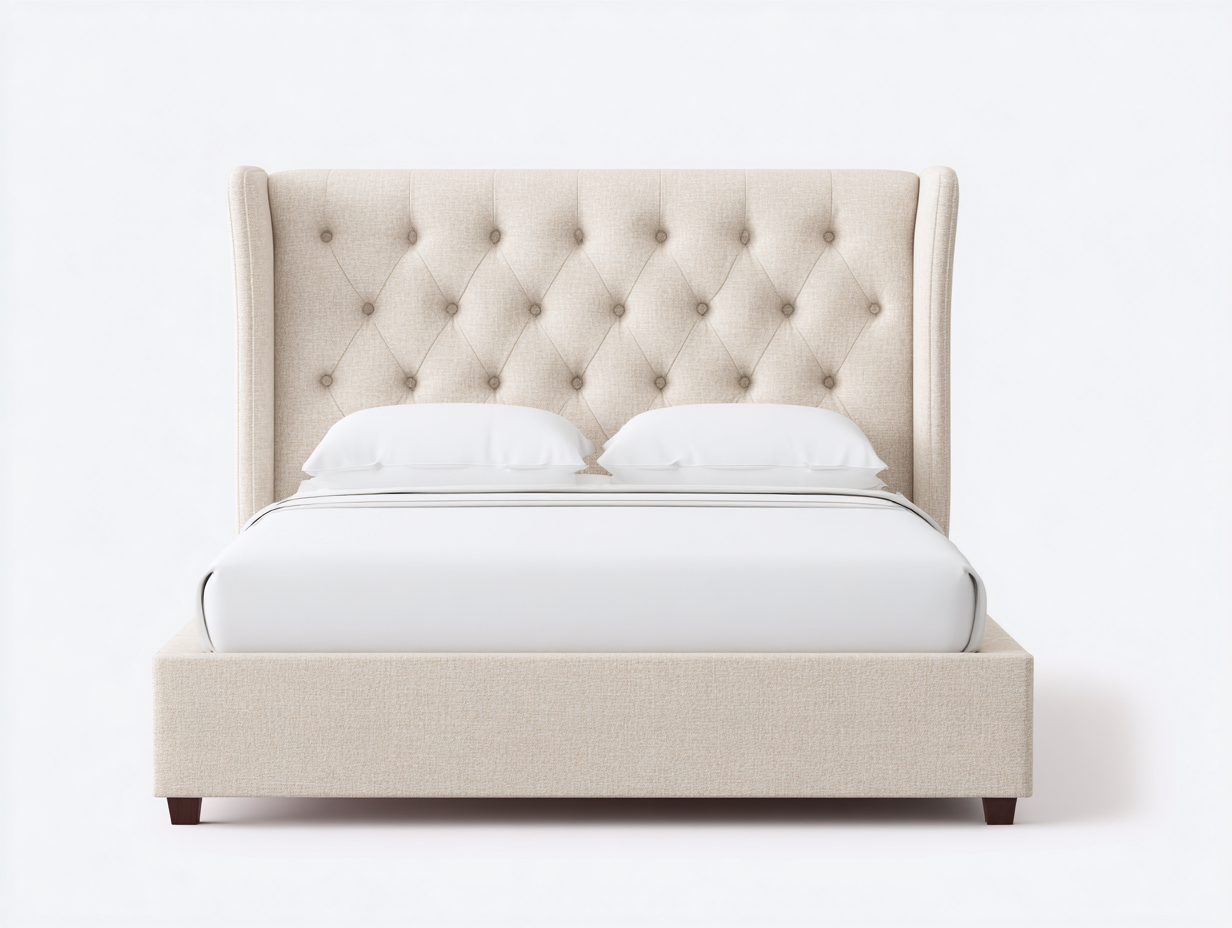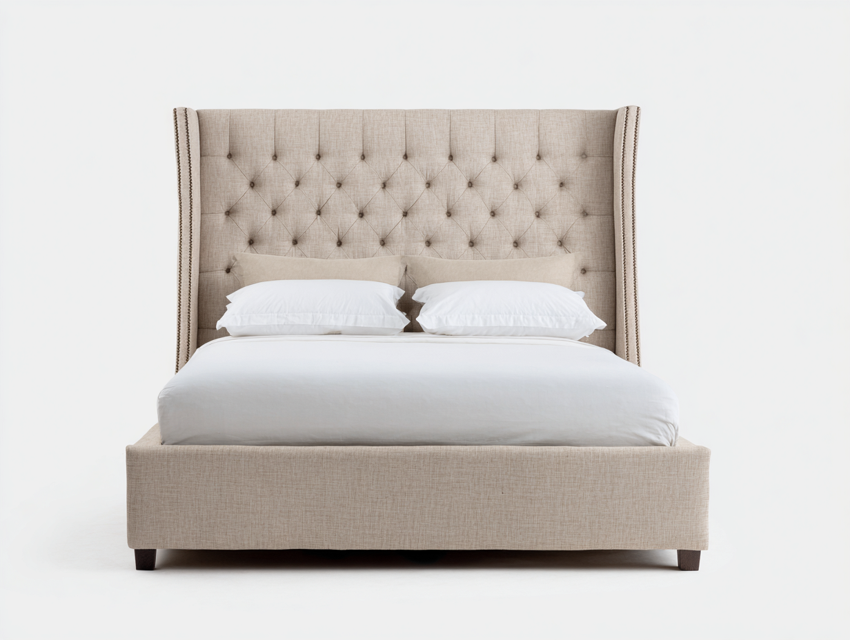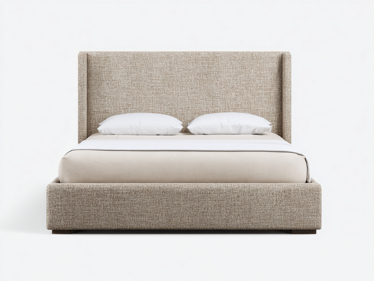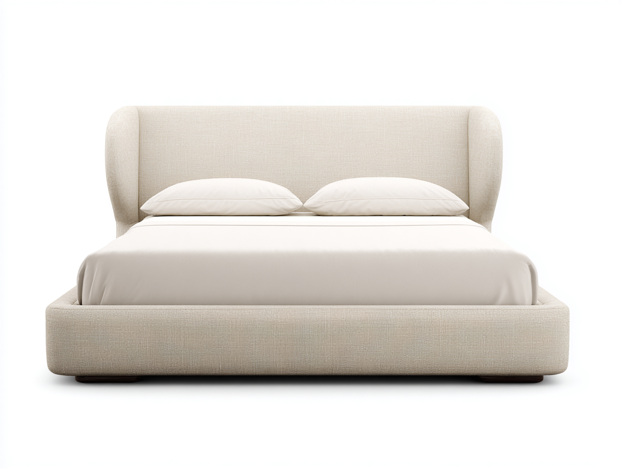 Letto matrimoniale imbottito tessuto 210x180x95 cm - rivestimento beige caldo - testiera avvolgente - stile moderno per camera da letto