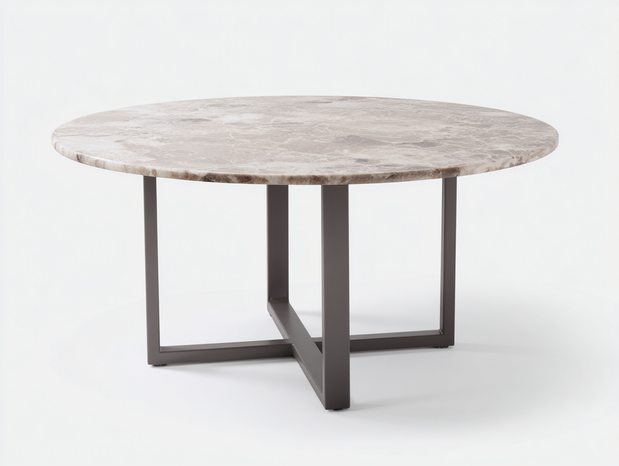 Tavolo da pranzo rotondo marmo e metallo 120x120x75 cm - piano in marmo beige - struttura grigio scuro - stile moderno per sala da pranzo