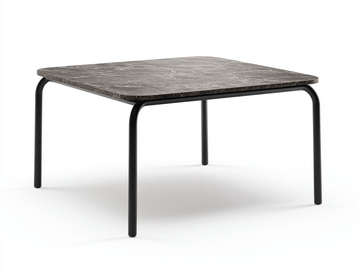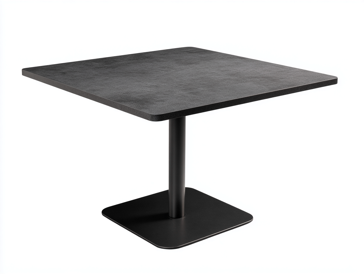 Tavolo da pranzo quadrato pietra e metallo 80x80x75 cm - piano nero opaco - base nera - stile moderno per ristorante e sala da pranzo