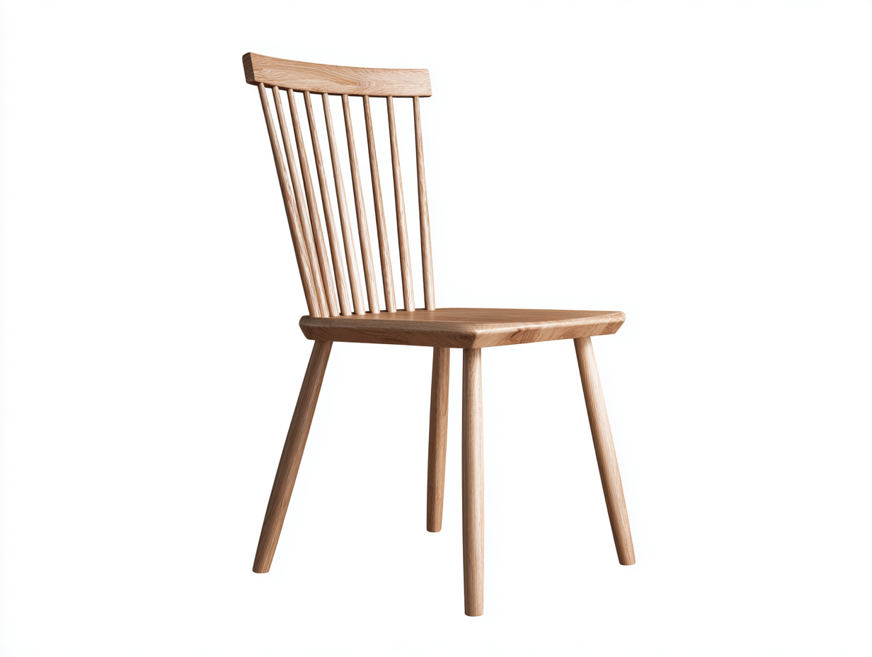 La sedia è realizzata in legno massello con una lavorazione naturale che valorizza le venature del legno. La superficie è accuratamente levigata per garantire solidità strutturale e una sensazione uniforme al tatto.